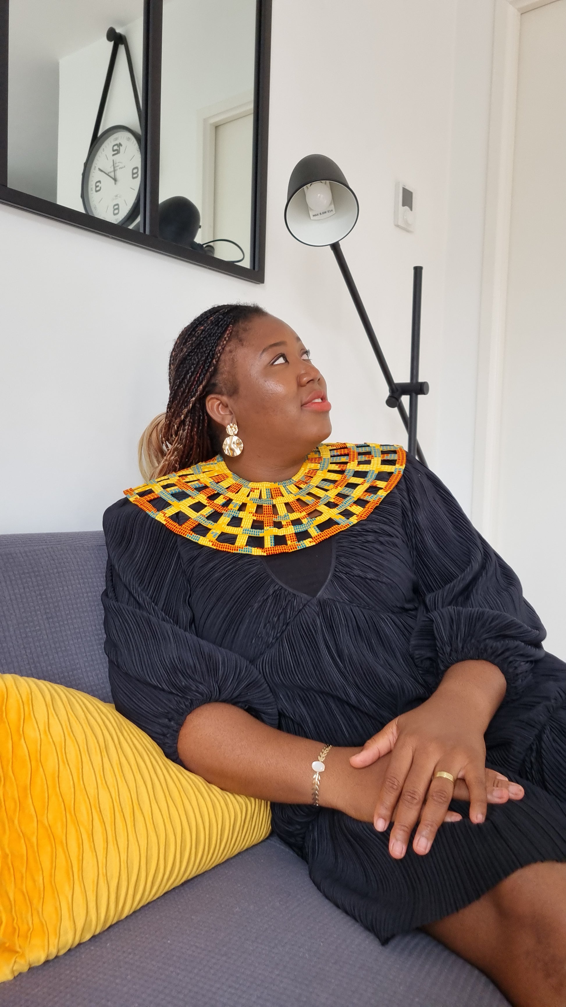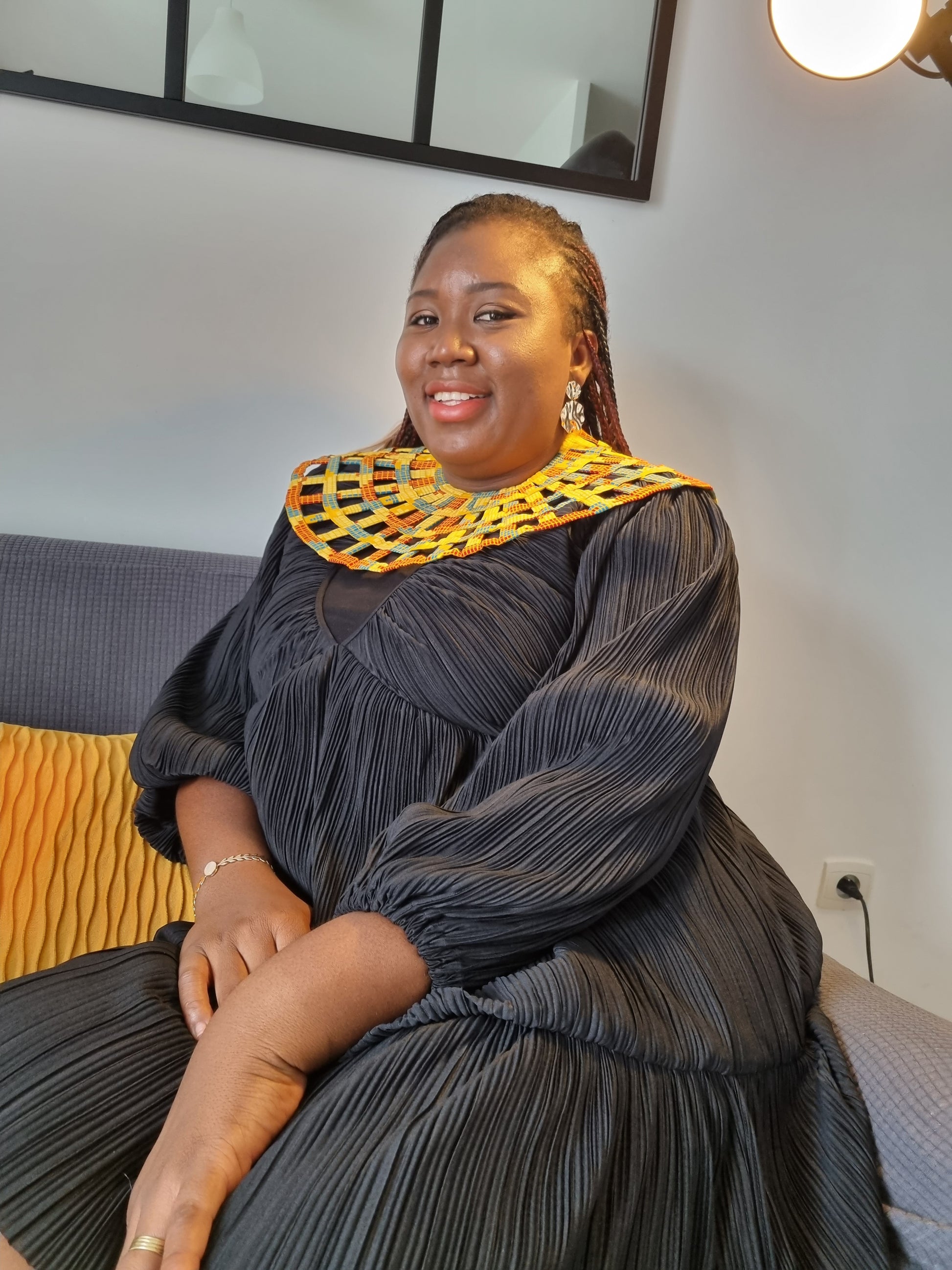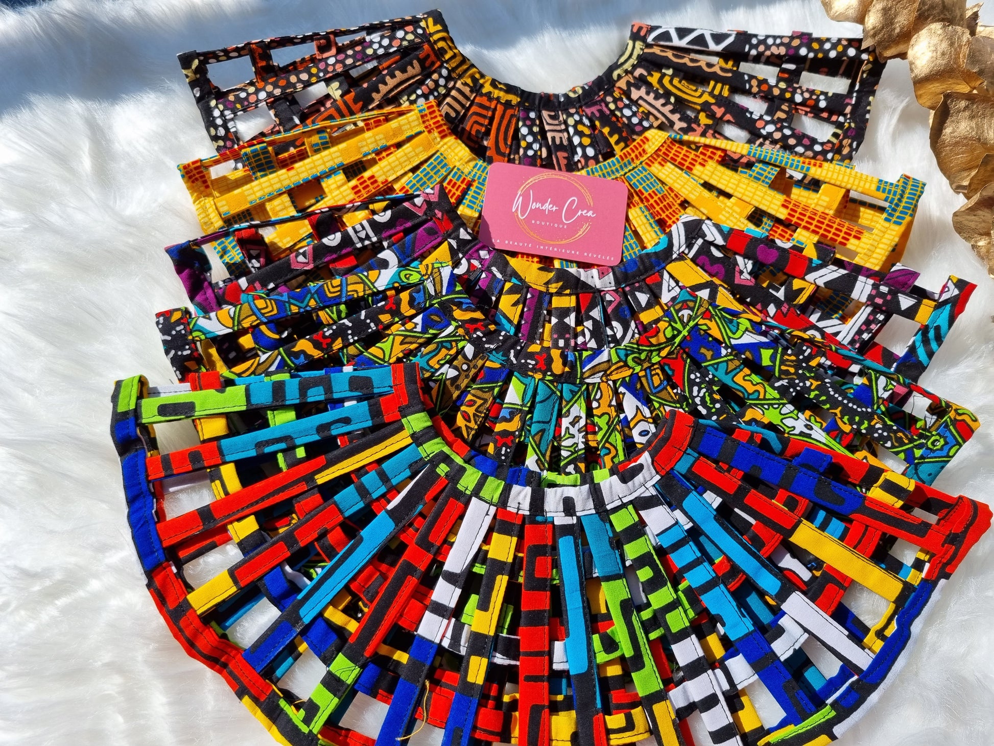 - Cette parure Maxi Collier Queen Esther, conçue en wax ou madras, allie authenticité et originalité pour sublimer votre allure avec élégance.