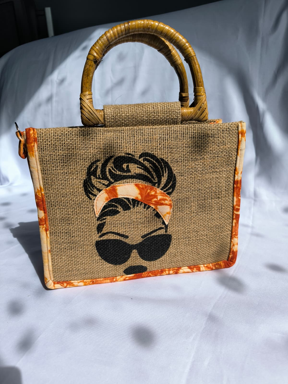 Alliant authenticité et fonctionnalité, le Sac Wonder Queen se distingue par son mélange habile de jute robuste et de pagne Ethnique Kokodunda (teinture à la main)
