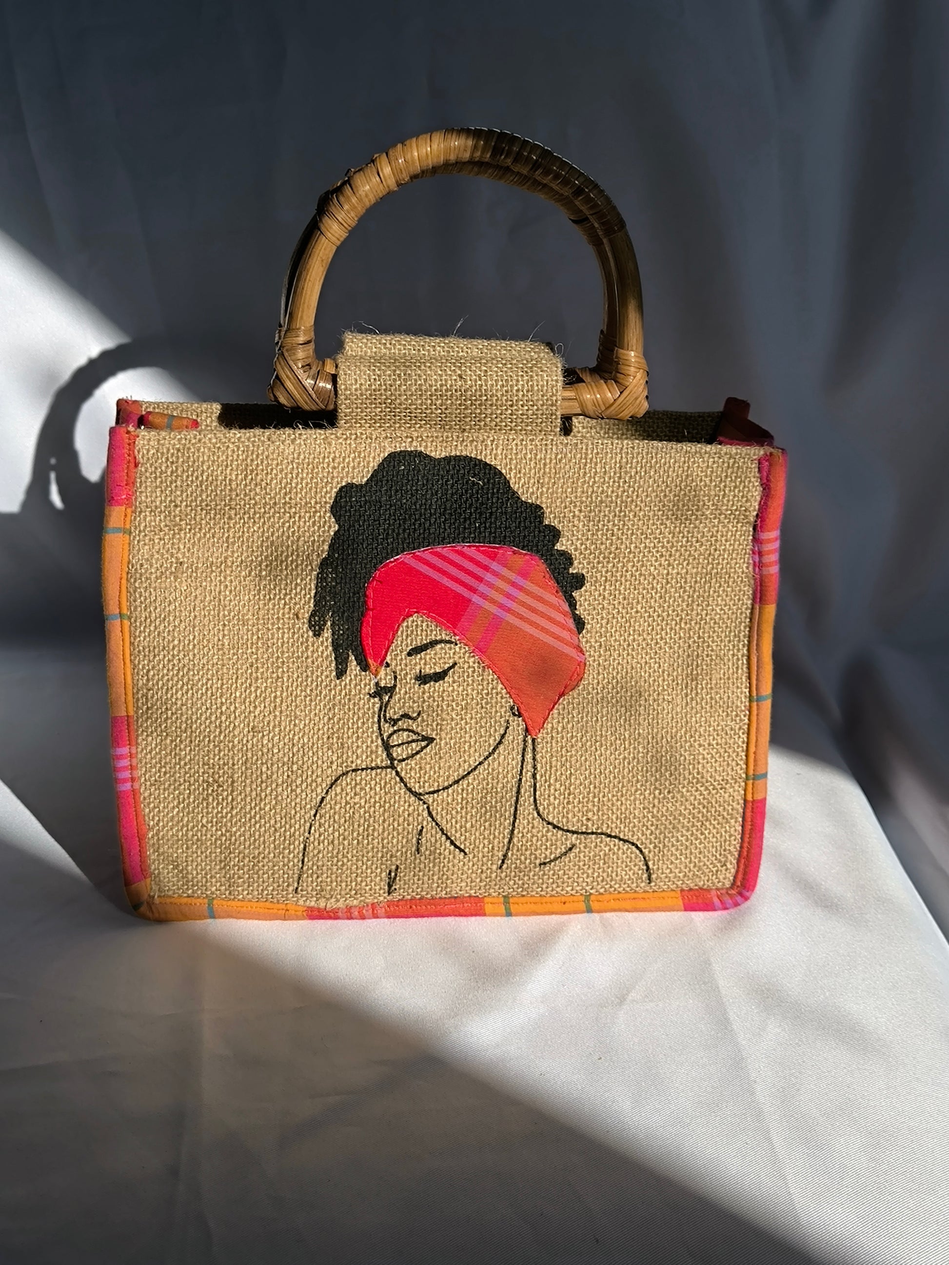 Le Sac Wonder Queen allie jute naturelle et tissu Madras pour célébrer la richesse culturelle des Antilles.